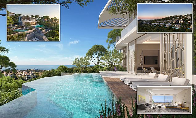 Each property boasts two outdoor swimming pools, ‘flourishing’ gardens and each home is situated at a different elevation to ensure ‘unimpeded panoramic views’ of the sea.