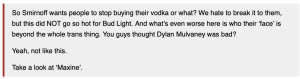 In the case of Smirnoff, Twitchy pulls the covers off this American company’s support for drag competitions and LGBTQIA causes.