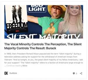 And, as we detailed, it was the silent majority who capsized Bud Light after it honored Dylan Mulvaney for calling himself a girl for an entire year.