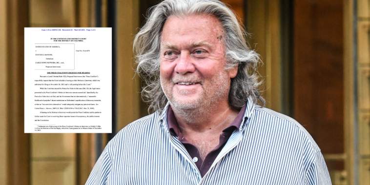 CNN has issued a request for a hearing on their Motion to Intervene in the case of the United States v. Steve Bannon. They seek to make public the documents that the Department of Justice has in the case, documents that Bannon also wishes to make public, but has been restricted from publicizing.