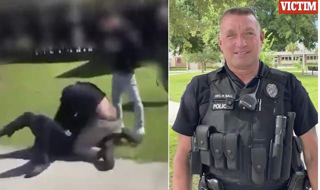 The young thug marched over to the school resource officer, grabbed him by the neck before flipping him on to his back.