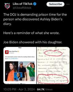 If Ashley Biden’s diary was fake, why would the DOJ be demanding prison time for defendant Aimee Harris?