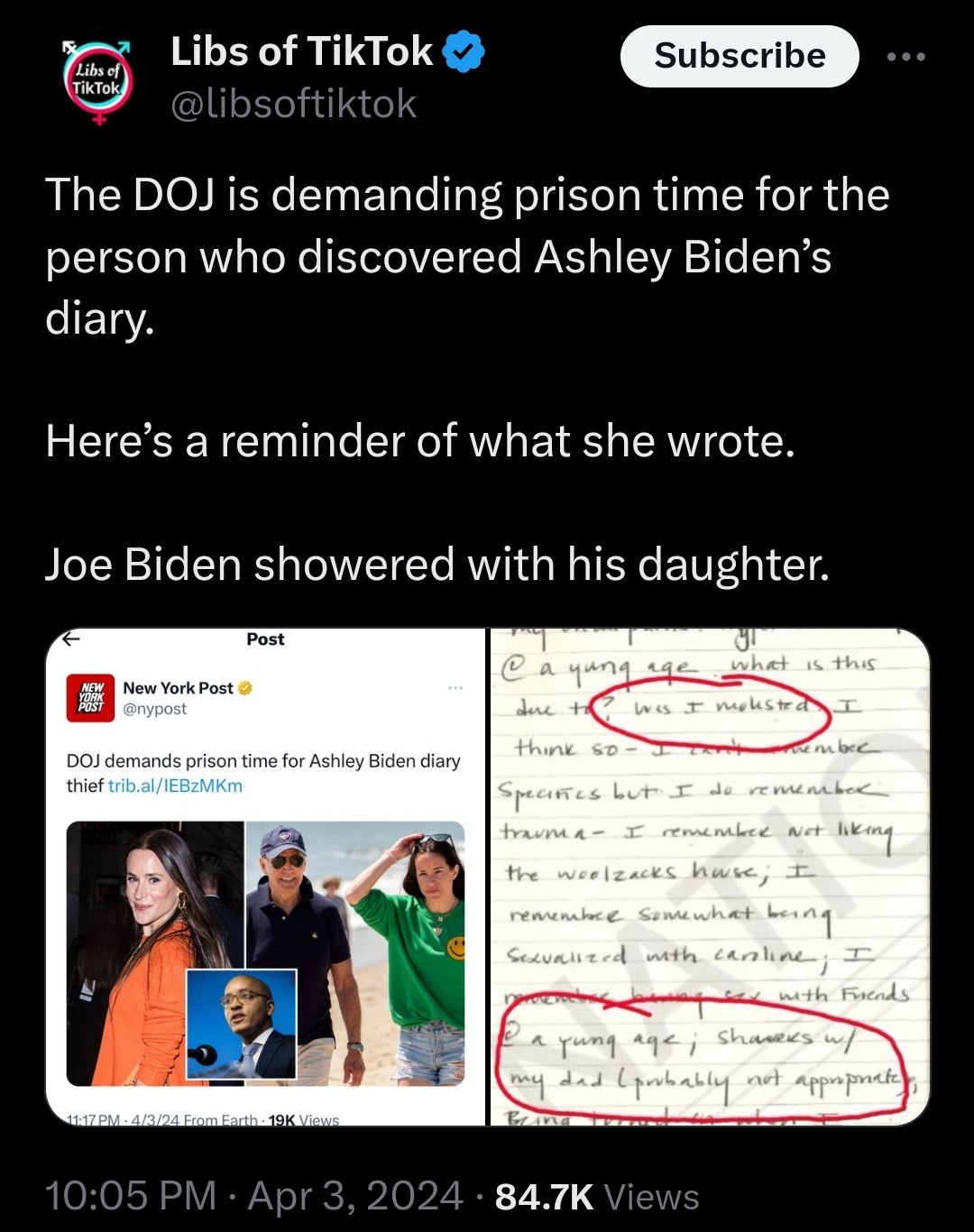 And if Ashley Biden’s diary is real as the DOJ has now confirmed, then American’s have a pedophile in Joe Biden occupying the Oval Office.