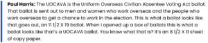 Paul Harris was tasked with overseeing the UOCAVA ballots during the audit. He described his experience.