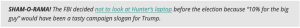 Thus far those are the only two charges that the FBI and the IRS are looking at. Never mind those emails pointing to the tens of millions of dollars from sleazeball deals in Russia, Ukraine, and with those pesky Chinses communists. You know, the things Hunter’s former business partner Tony Bobulinksi has been talking about for years.