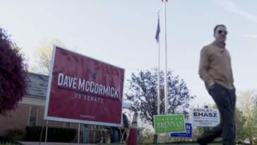 Emhoff stumping for wife and presumptive Democratic nominee Kamala Harris on the campaign trail. (Gregory Rec/Portland Press Herald via Getty Images)