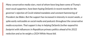 Trump made the remarks on Fox News during an interview with Sean Hannity in response to a recent report from The New York Times, which claimed that Trump had a “long-stewing resentment” toward DeSantis because, according to The Times, DeSantis “has been acting far less like an acolyte and more like a future competitor.”