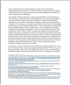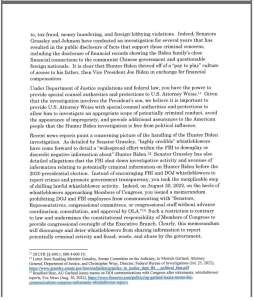 It continues: “Indeed, on August 30, 2022… you issued a memorandum prohibiting DOJ and FBI employees from communicating with ‘Senators, Representatives, congressional committees, or congressional staff without advance coordination, consultation and approval by OLA.’”