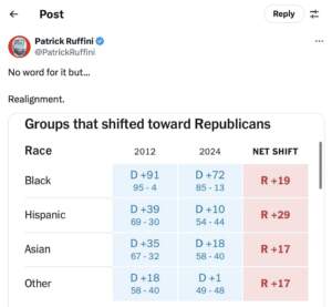 in National Politics The Stats: The Massive ‘Trump’ Shift In 2024 Election Was Truly Unprecedented November 26, 2024, 11:29 pm 1.7k Views Leave a Reply Cancel replyYou must be logged in to post a comment. Loading…