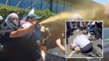 in The Hate, Videos Video: Pro-Palestinian Mob Violently Attack Jews, Journalists Outside LA Synagogue
