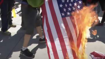 The flag burning was part of Iran’s anti-Israel and anti-American “Quds Day” protests.